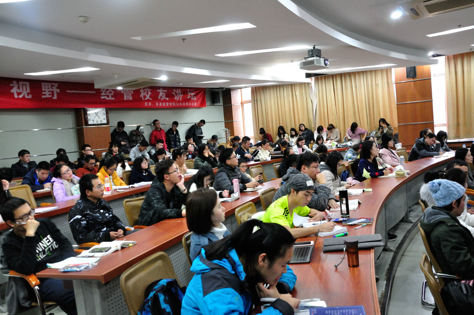 讲座提问环节,现场听众就学生创业和学习如何兼顾、未来企业这个组织形式是否会消失,以及面对信息透明的时代,初创企业者是应该做开拓者还是跟随者等问题与校友进行了探讨。最后,戴书记对校友的分享表示感谢,并希望同学们能够理性分析创业,同时也期望学校的创新创业教育能给学生未来创业带来助力。