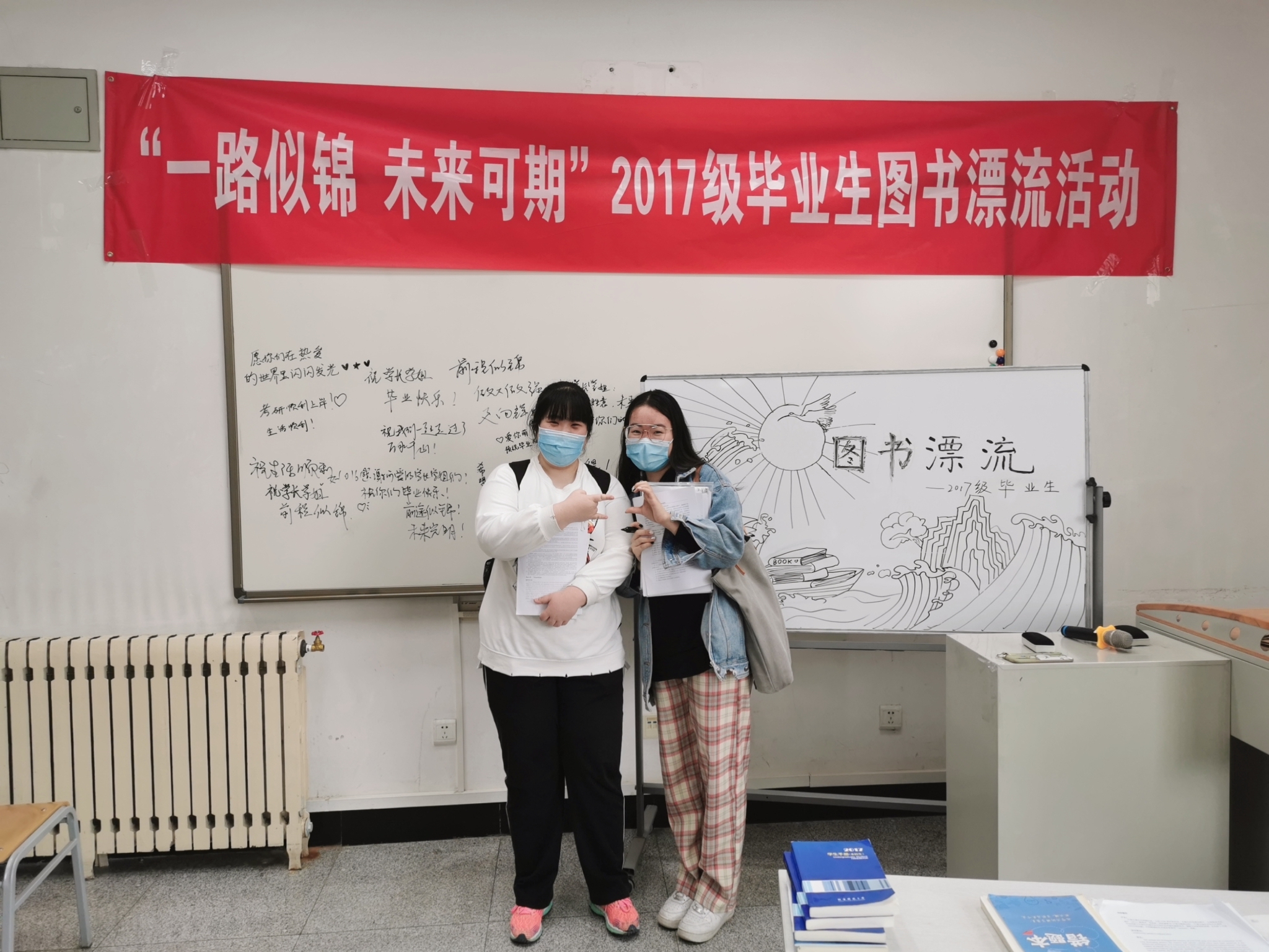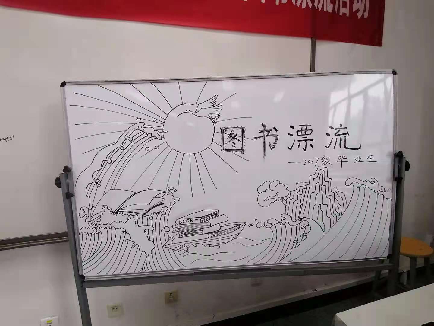 4月25日,伟德国际1946源于英国于经管楼301和310成功举办了以“一路似锦,未来可期”为主题的2017级毕业生图书漂流活动。为确保活动的顺利开展,2017级毕业工作组进行了为期一周进行活动预热,即对2017级经管准毕业生提出捐书倡议,以上门回收的方式进行旧书收集。活动前夕,毕业工作组成员将已回收的书整齐的摆放在经管楼301和310,并绘制了可爱的插画。