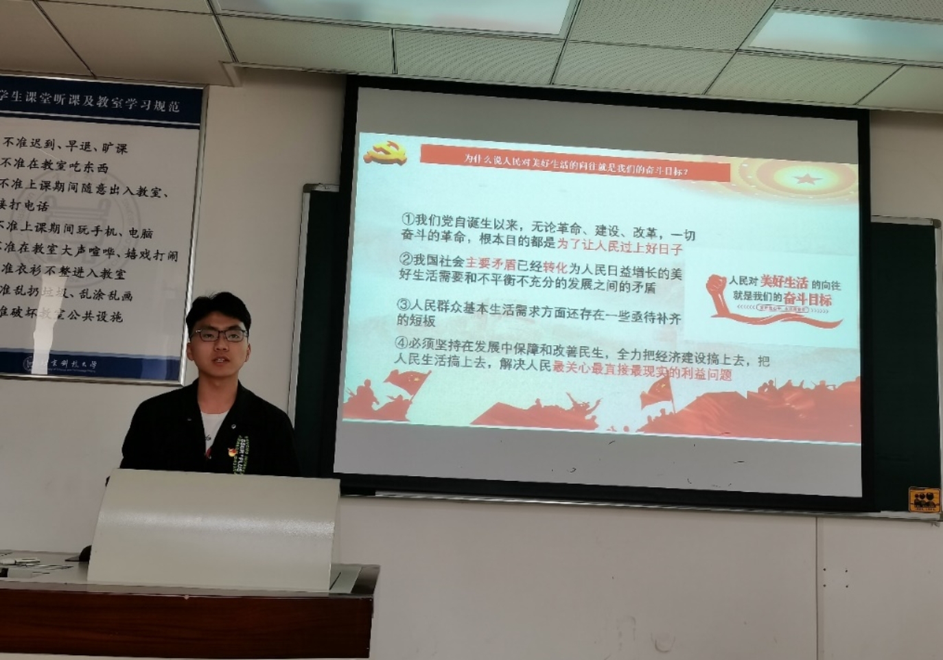 支部成员任霄霄认为党的指导思想、性质宗旨决定了中国共产党必然成为中华民族伟大复兴的历史担当者。正是中国共产党,带领全国人民在70多年的新中国建设中取得举世瞩目的成就,使中国在短短30多年里摆脱贫困并跃升为世界第二大经济体。