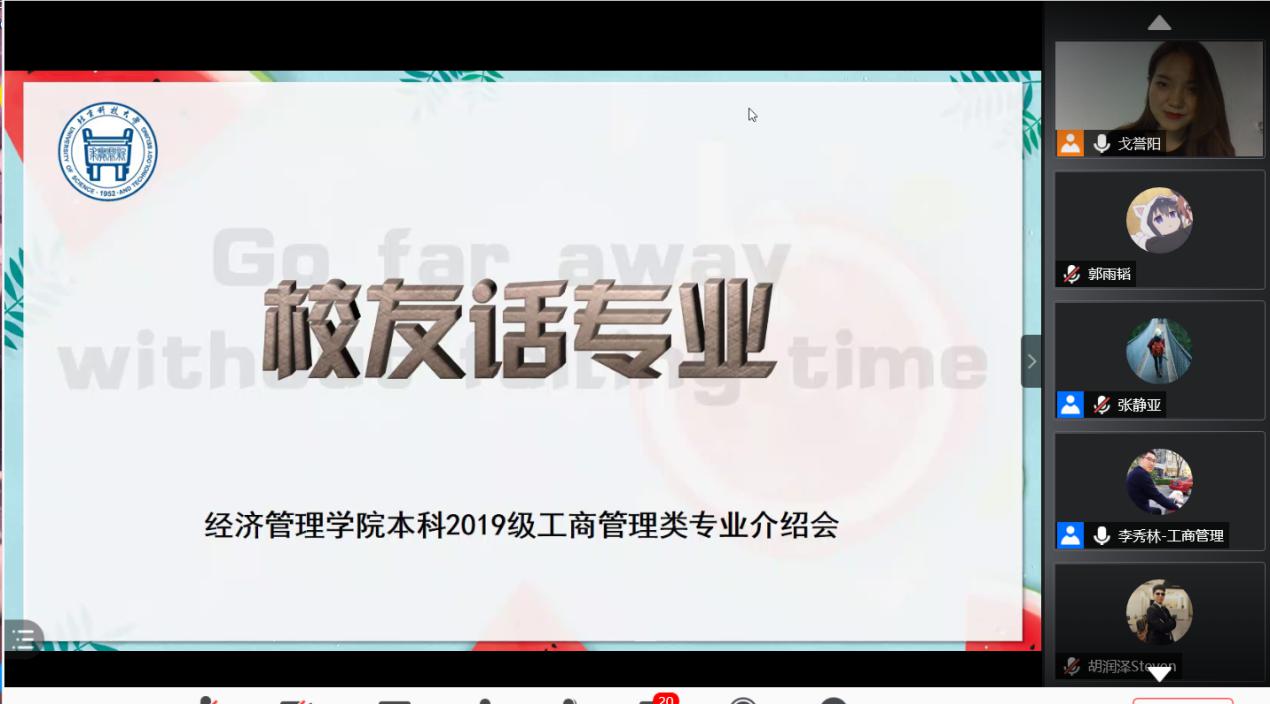 8月24日晚,经管学院本科19级工商管理类“校友话专业”——专业介绍会在线上召开,本次会议邀请优秀校友顾理琪、郑紫夫、张静亚和李秀林,为将要面临分专业的同学们讲解各自所学专业,提供一些选择专业的经验。会议由辅导员戈誉阳主持。