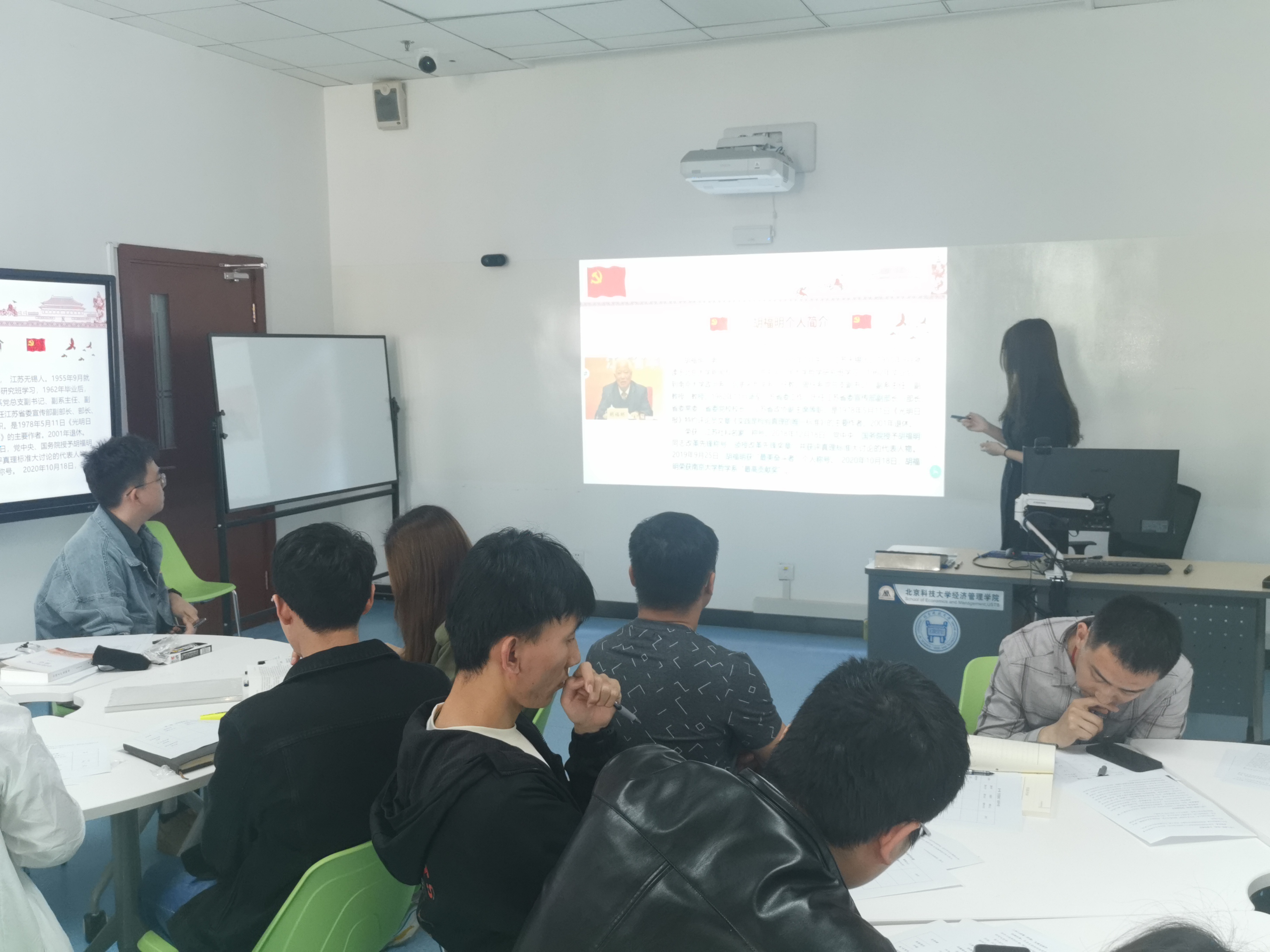 最后分享的是本科低年级党支部党员于越,她分享的主题是“胡福明:做永不停歇的思索者”,胡福明先生是《实践是检验真理的唯一标准》的作者,在艰苦的环境中,胡老先生刻苦研读理论著作,深入思考,反复修改,坚持不懈,最后完成了这篇重要的引领思想的文章。