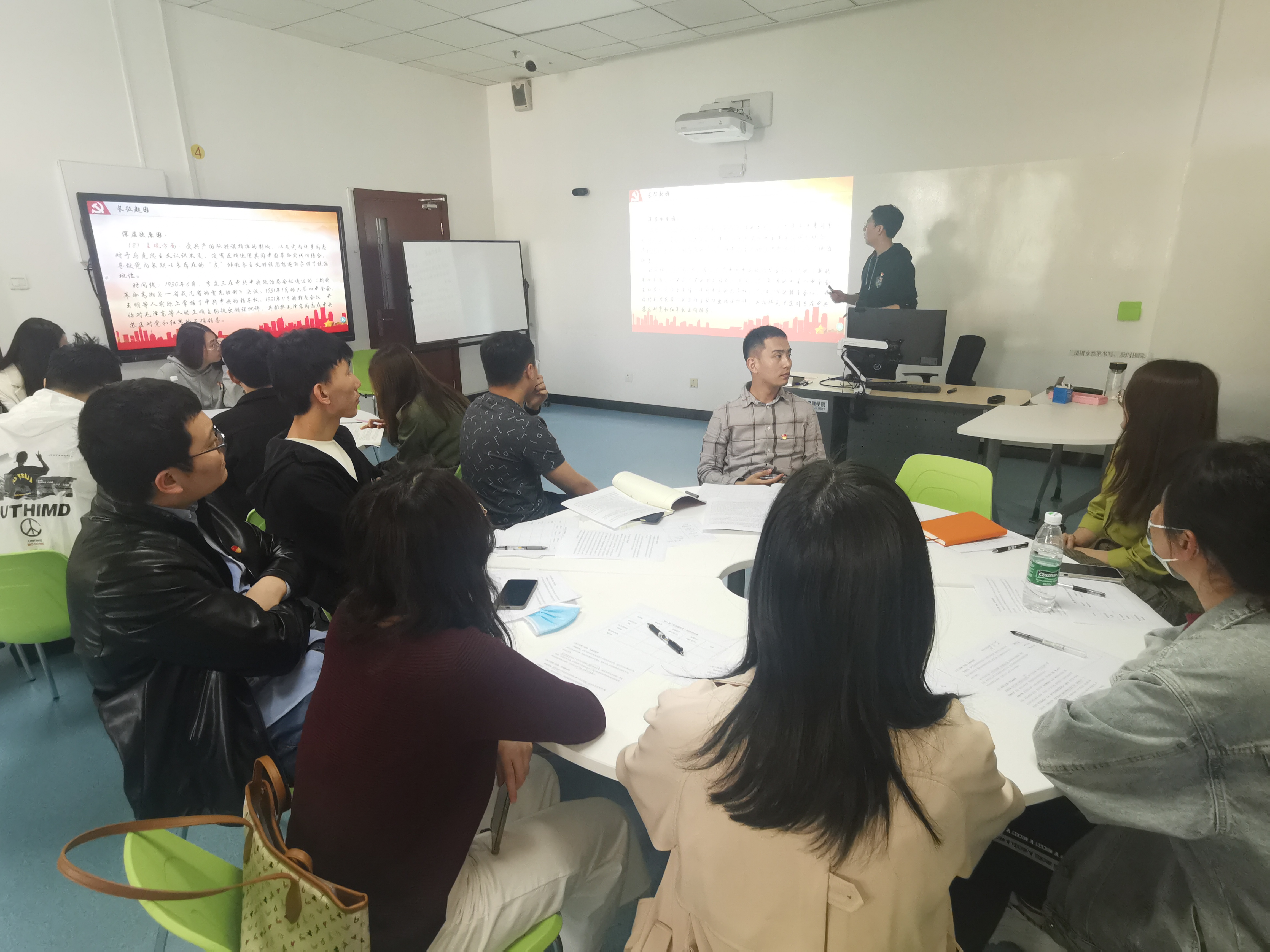 按照伟德国际1946源于英国学生党支部党史学习教育“三学三讲 纵览百年”工作安排,结合4月23日世界读书日的重要契机,第一期“党员圆桌会”于经管楼404顺利举办。出席本次会议的有辅导员李响、丁源、孙鑫老师,汇报人管工研党支部党员胥子政、本18党支部党员李钰葳、本低党支部党员于越,以及学院其他学生党支部的党支部书记,活动由党建辅导员张洪榛老师主持。
