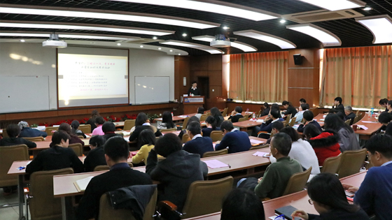 首先,林建华指出学习党的十九大精神的重要意义,并与师生分享自己的学习心得体会。他强调认真学习宣传贯彻党的十九大精神是当前和今后的首要政治任务,自己在学习十九大报告时,总体体会是博大精深。他提倡在学习时应将业务学习与政治学习相结合,着眼于学懂、弄通、作实的目标,着手于理论与实践相结合、历史与现实相结合、当前与未来相结合的方法,着力于深刻理解党的十九大主题、习近平新时代中国特色社会主义思想、五年来党和国家事业发生的历史性变革、我国社会主要矛盾的变化等几个重点和关键。他还特别指出中国特色社会主义进入新时代也意味着要有新起点、新理论、新使命、新变化、新要求及新征程。