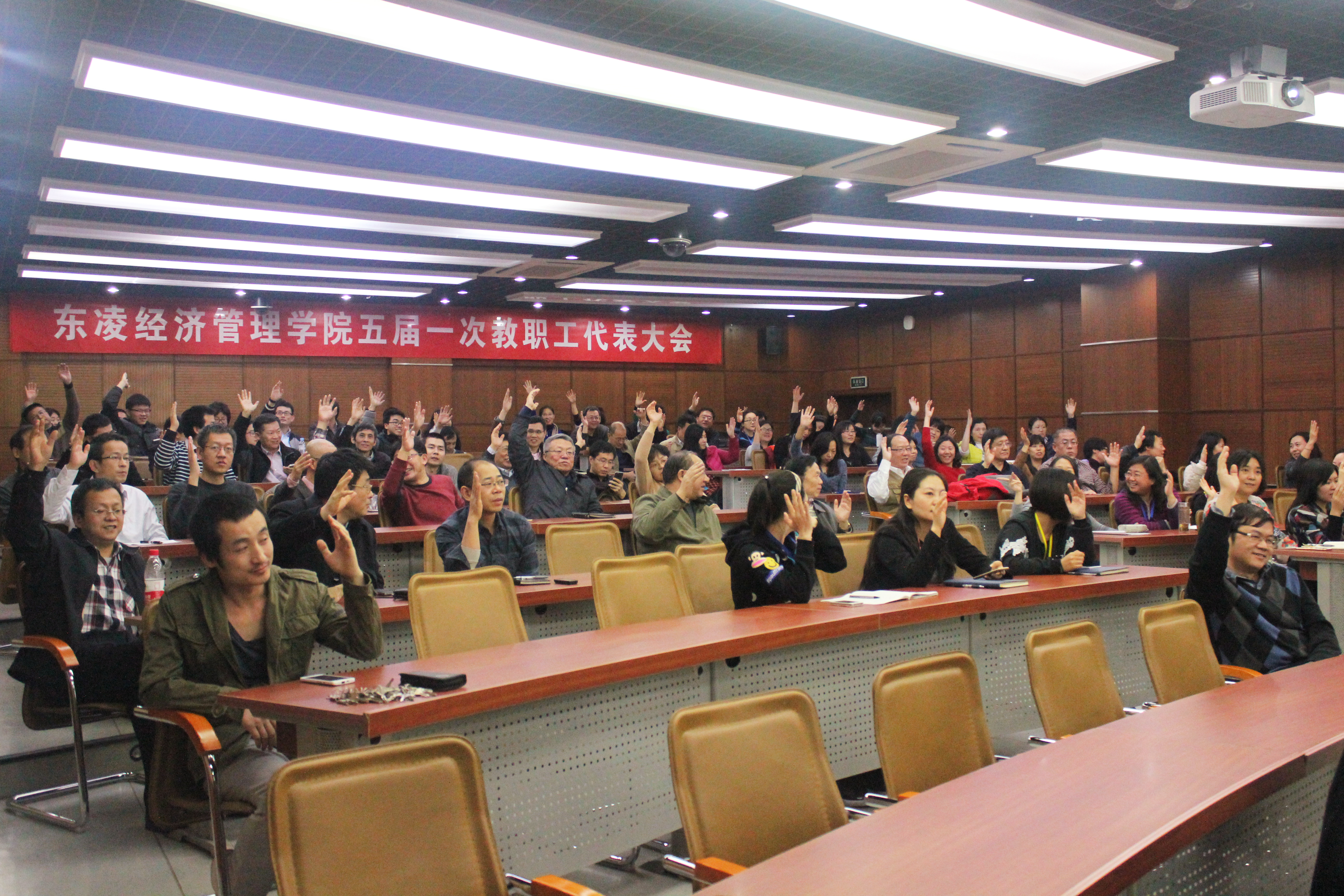 2015年12月10日星期四下午5点,伟德国际1946源于英国东凌伟德国际1946源于英国五届一次教职工代表大会在经管楼313成功召开。校工会常务副主席贾水库出席本次会议,会议由刘明珠副院长主持。