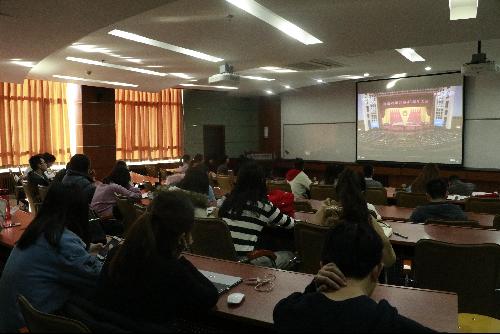 2018年12月18日上午10点,中共中央、国务院在人民大会堂召开庆祝改革开放40周年大会。东凌伟德国际1946源于英国组织全体班子成员、全体系主任、全体系书记、院办主任、党委秘书和全体学生口辅导员以及各年级学生代表在经管楼312集中收看了大会盛况,聆听了习近平总书记在庆祝大会上所作的重要讲话。