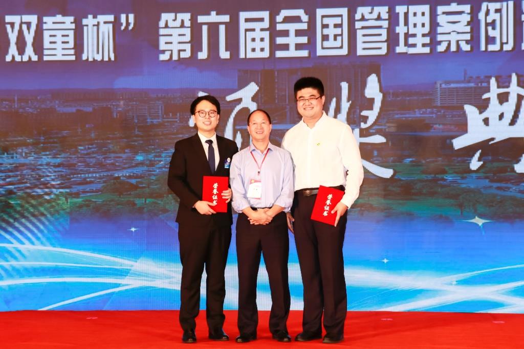 浙江省金华市委常委/义乌市委书记林毅(最右)、中国管理案例共享中心主任/大连理工大学管理与经济学部部长苏敬勤教授(最左)为冠军队伍“超级王牌战队”颁奖