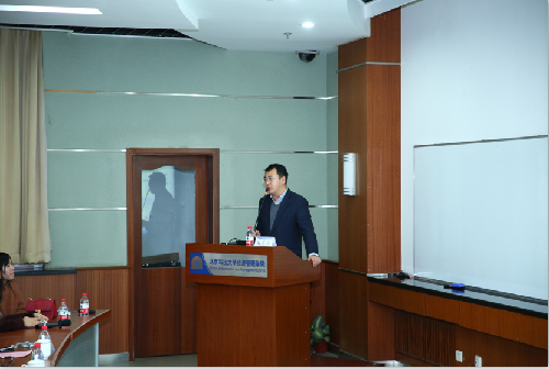 聘任仪式结束后,谢克海校友带来了一场精彩纷呈的主题讲座:5M领导力。他从总裁的视角深入浅出的分享了5M领导力的由来、具体内容和实践应用。用丰富多彩的实践案例、轻松有趣的企业故事,着重分析了人力资源管理领域“管理自我、管理上级、管理下属、管理同事和管理外部伙伴”五个部分。在座的同学们不仅享受到了一场知识的盛宴,同时也获得了职业选择和发展上的诸多建议。