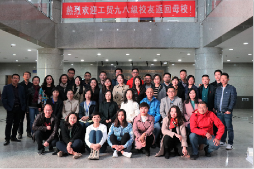 最后,大家在经管楼大厅合影留念。工贸98级校友入学二十周年师生见面会圆满结束。